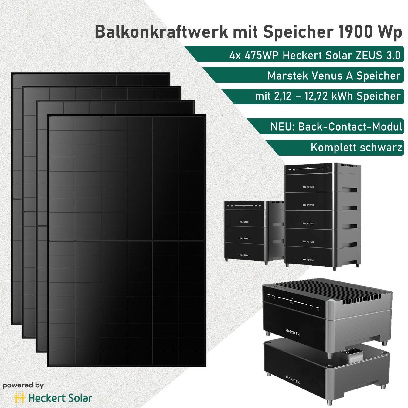 1900Wp Heckert Solar Balkonkraftwerk mit Speicher Marstek Venus A und ZEUS 3.0