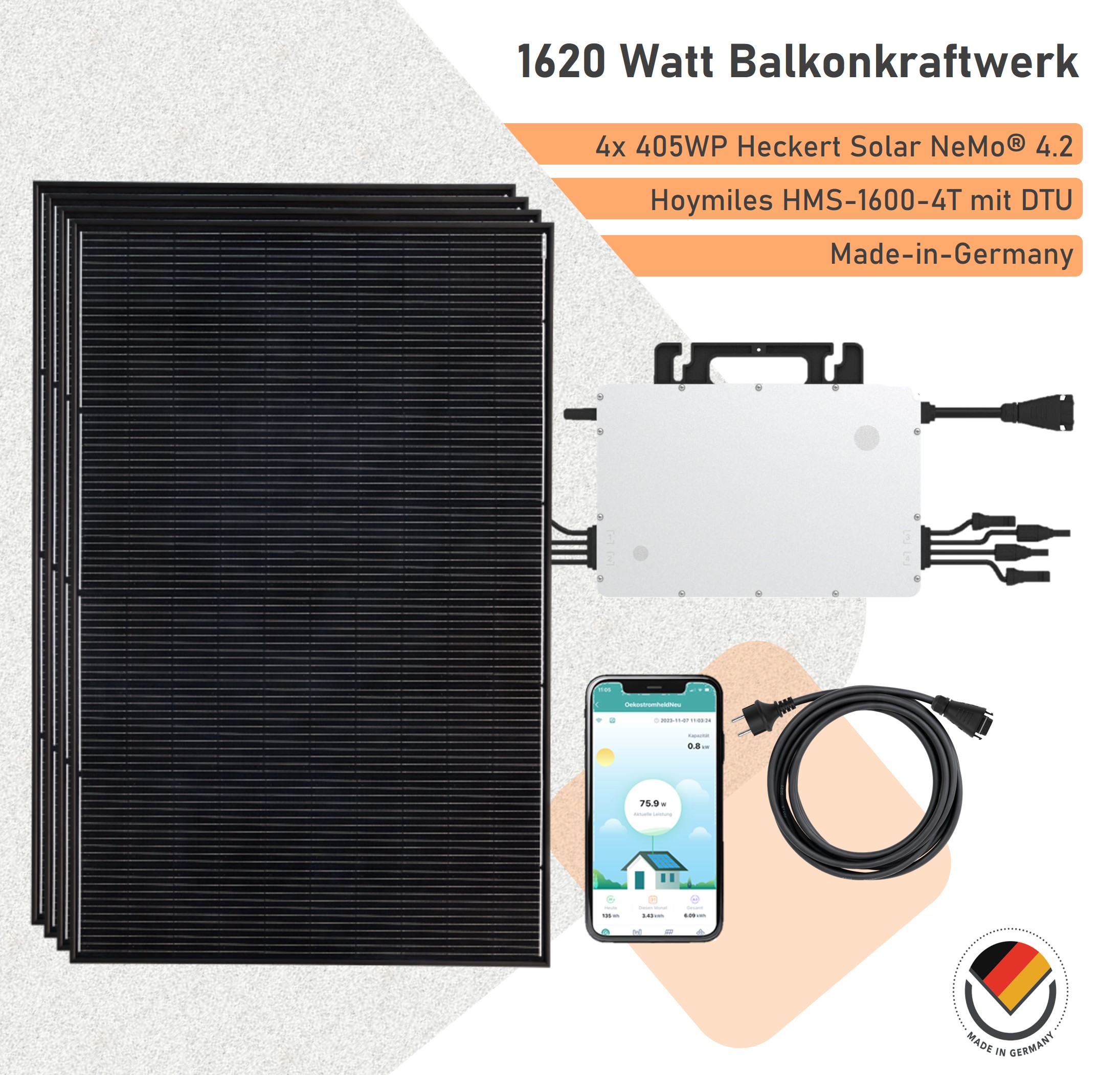 Heldenpaket Maxi Made-in-Germany: 1620 Watt Balkonkraftwerk von Heckert Solar mit Hoymiles HMS-1600-4T