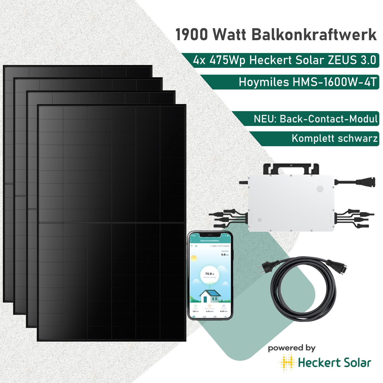 1900Wp Heckert Solar Balkonkraftwerk Zeus 3.0 Back-Contact Bifazial Hoymiles HMS-1600