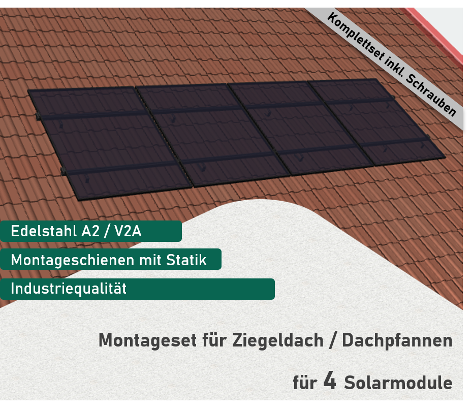 PV Montageset Ziegeldach für 4 Solarmodule